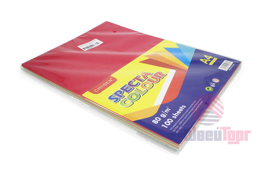 В 1 упаковке 100 листов (10 цветов по 10 штук), плотность - 80 г/м².