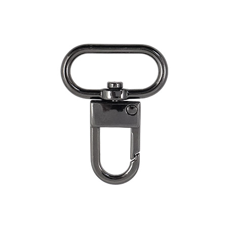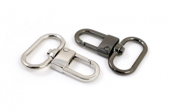 Металлический карабин №1144 с поворотной овальной рамкой — это надёжный и функциональный элемент фурнитуры, идеально подходящий для пошива сумок, рюкзаков, создания брелоков и других аксессуаров. Изготовлен из полированного металла с качественным покрытием, он обеспечивает долговечность использования и эстетичный внешний вид. Карабин доступен в двух цветах: никель и тёмный металл, что позволяет выбрать оптимальный вариант для различных дизайнерских решений. Поворотная овальная рамка обеспечивает удобство использования и гибкость в креплении, подходит для стропы шириной 2,5 см. Надёжный пружинный механизм карабина позволяет легко и без усилий присоединить или снять элемент изделия. Общий размер карабина 3,2х4,2 см.