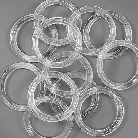 Кольца выполнены из прозрачного, прочного пластика и имеют достаточно широкую область применения. Их можно использовать в качестве фурнитуры для нижнего белья и купальников, фурнитуры для сумок. С их помощью можно декорировать домашний текстиль, использовать в различных творческих проектах: макраме, создание бижутерии. Также, колечки можно использовать как пряжку для ремешка, подхваты для штор, оформив их шнуром.