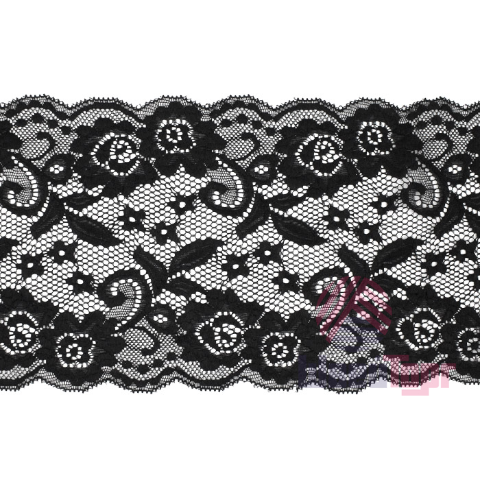 Кружево стрейч шириной 15 см обладает нежной текстурой и бархатистой поверхностью, что делает его тактильно приятным. Это эластичное кружево хорошо тянется и воздухопронецаемо, что делает его идеальным для пошива нижнего белья, пижам и отделки одежды. Оно также отлично подходит для различных видов рукоделия. Кружево доступно в чёрном цвете, а длина мотка составляет 10 ярдов (9,14 метров), что обеспечивает достаточное количество материала для реализации ваших творческих проектов.