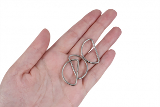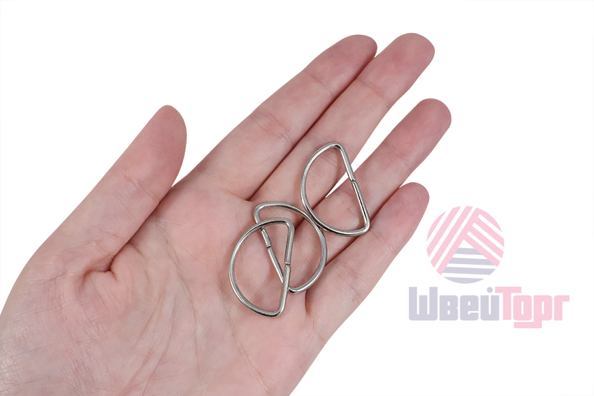 Практичное полукольцо из металла. Благодаря тонкой конструкции и минималистичной форме подходит для пошива и ремонта одежды, сумок, ремней и бытовых нужд. Размеры габаритные: 3х1,8 см, ширина ремешка: 2,5 см. Представлены в двух расцветках: никель и черненный.