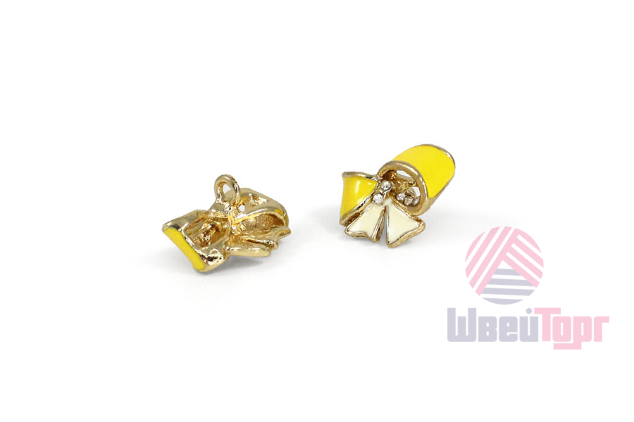 Элегантная пуговица в форме бантика, станет изысканным акцентом вашего изделия. Её оригинальный дизайн сочетает в себе оригинальную форму милого бантика, усыпанную мелкими стразами, и контрастный яркий окрас. Диаметр пуговицы: 2 см.