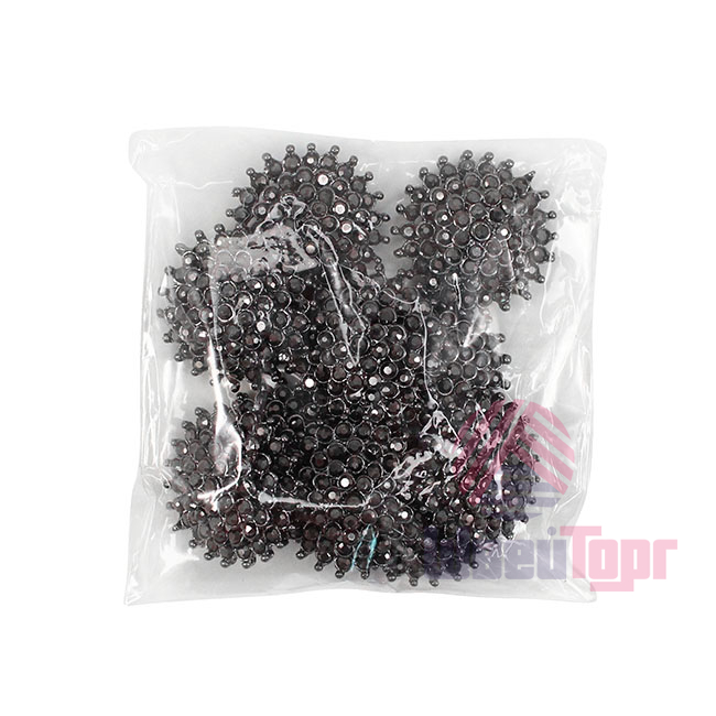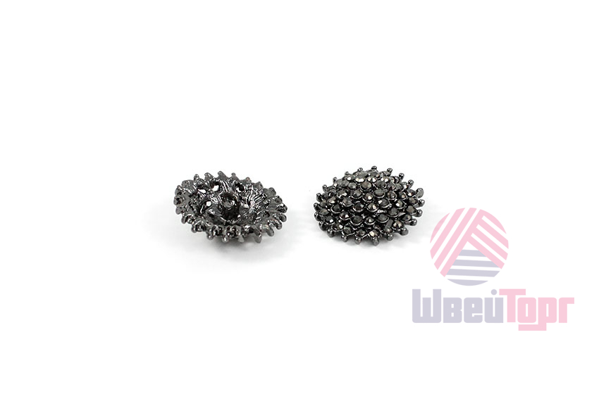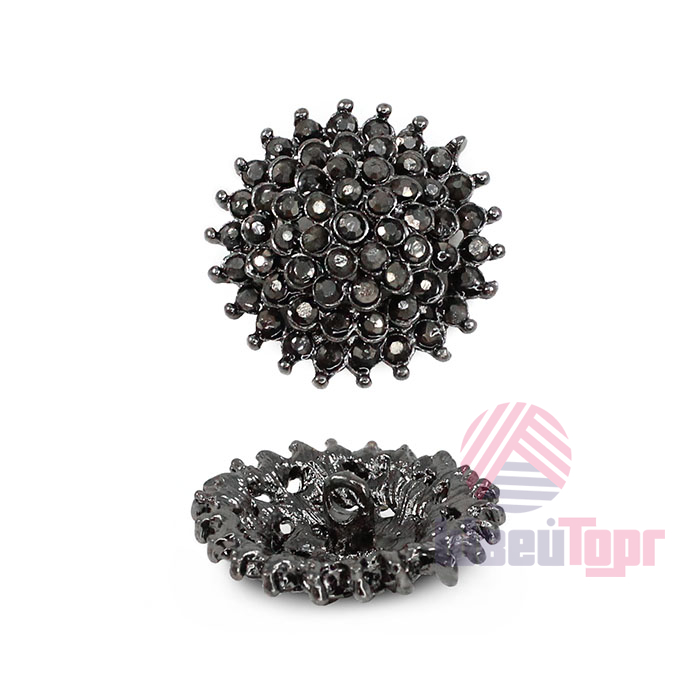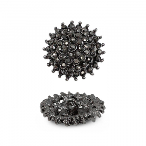 Элегантная пуговица круглой формы станет изысканным акцентом вашего изделия. У пуговицы необычный, оригинальный дизайн – динамичная, многоярусная форма, усыпанная множеством страз. Диаметр пуговицы: 2,6 см.