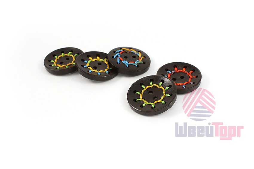 Купить в Уфе Пуговица деревянная #25-634 3 см т.коричнев./цвет. 1/20 шт оптом с доставкой - цена 234 руб.
