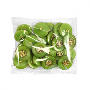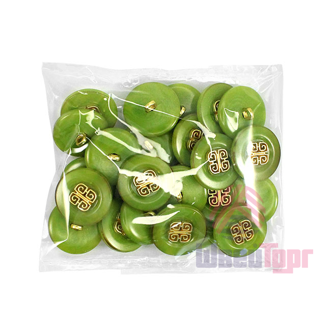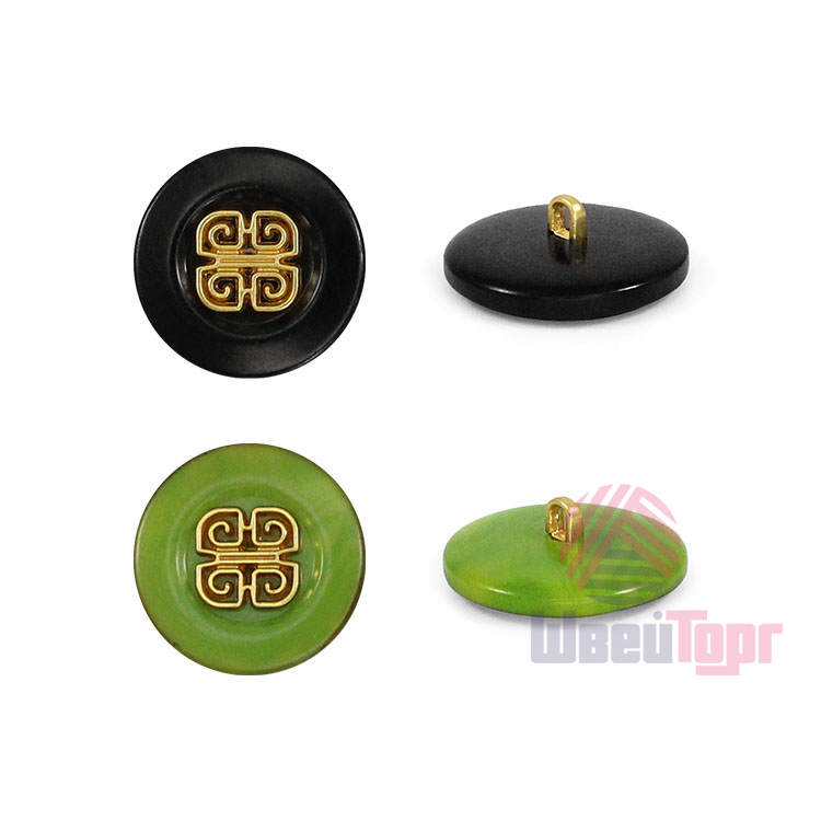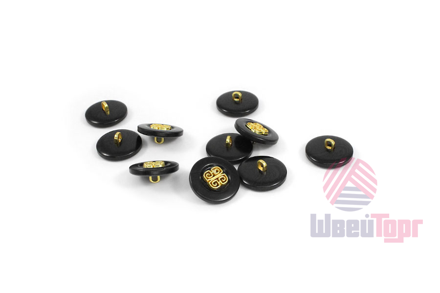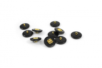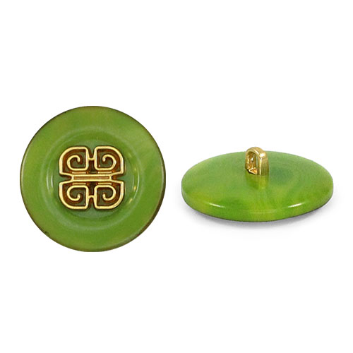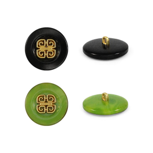 Главная особенность данной пуговицы – декоративный накладной элемент, который создаёт яркий акцент. Благородный блеск золотого центрального элемента, эффектно контрастирует с основными цветами пуговицы – кремовым, зелёным и чёрным, позволяя подобрать идеальный вариант под любой стиль.