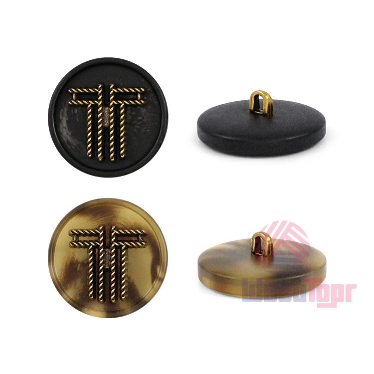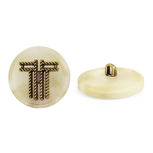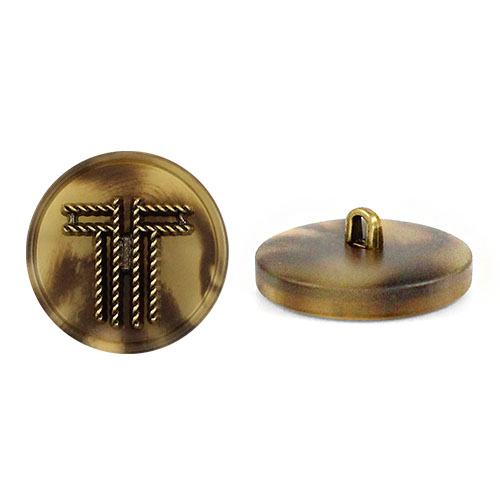 Главная особенность данной пуговицы – декоративный накладной элемент, который создаёт яркий акцент. Благородный бронзовый цвет центрального элемента, эффектно контрастирует с основными цветами пуговицы – светло-бежевый, кофейный и чёрный, позволяя подобрать идеальный вариант под любой стиль.