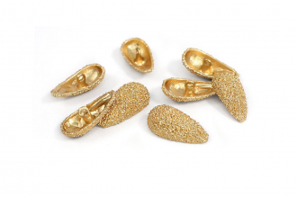 Эта пуговица на ножке сразу привлекает внимание своей нестандартной формой в виде капли, и уникальной фактурной поверхностью. Такой выразительный дизайн делает её настоящим акцентом, способным преобразить и украсить любой предмет одежды. Пуговица представлена в двух благородных цветах – матовое серебро и матовое золото, что позволяет подобрать идеальную фурнитуру для вашего проекта, добавляя ему индивидуальности и стиля.