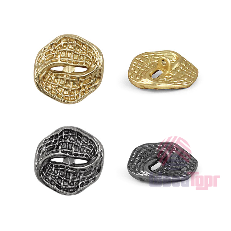 Эта металлическая пуговица на ножке привлекает внимание своим уникальным дизайном. Пуговица напоминает плоское перекрученное кольцо, дополненное выразительной фактурной поверхностью. Дизайн пуговицы – это баланс смелой оригинальности и сдержанного минимализма. Такие пуговицы станут идеальной стильной деталью для жакета или костюма, добавляя образу индивидуальности и современное звучание.
