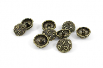 Пуговица доступна в двух цветах – чернённый и антик – оба варианта выгодно подчёркивают рельефную поверхность и добавляют пуговице нотку роскоши. Прочная ножка обеспечивает удобное пришивание, а необычный дизайн делает эту пуговицу настоящим акцентом в любом образе. Данные пуговицы прекрасно подойдут для ваших костюмов и жакетов.
