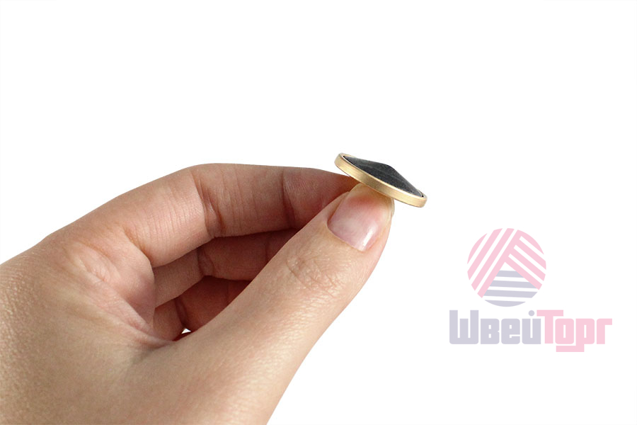 Пуговица на ножке для создания минималистичного и стильного образа. Пуговица собрана из двух частей – основа из матового золота и лицевая часть, конусообразной формы, с лёгким эффектом разводов. Сдержанный и интересный элемент для оригинального образа.