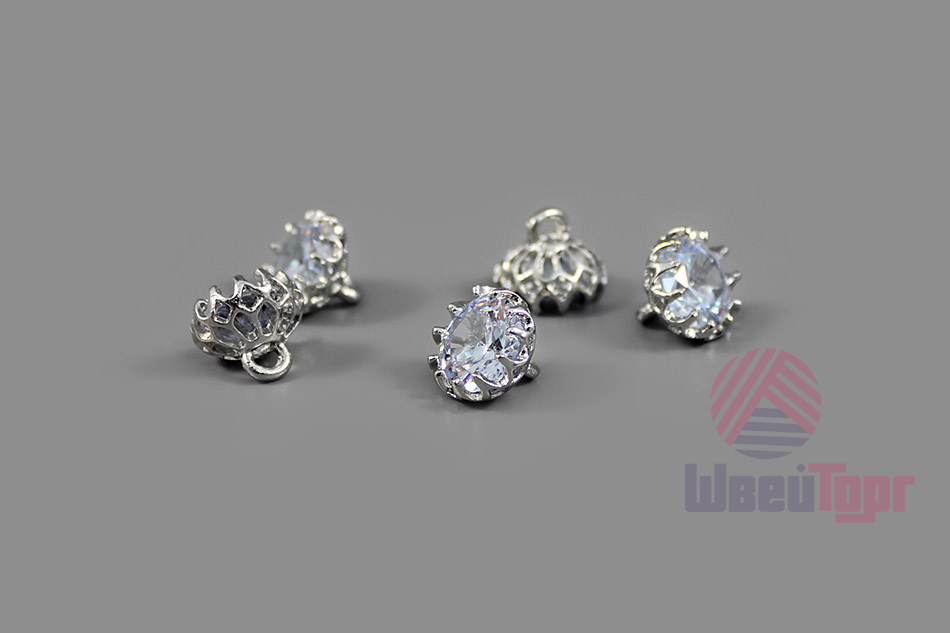 Купить в Уфе Пуговица №П-277 18L никель со стразами 1/20 шт оптом с доставкой - цена 745 руб.