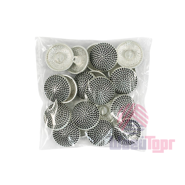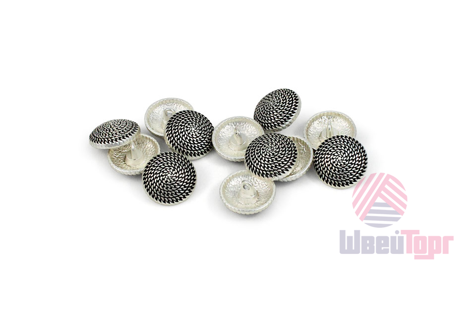 Эта пуговица на ножке сразу привлекает внимание своей уникальной фактурной поверхностью в виде имитированных цепей. Такой выразительный дизайн делает её настоящим акцентом, способным преобразить и украсить любой предмет одежды. Пуговица представлена в двух благородных цветах – серебро и светлое золото, что позволяет подобрать идеальную фурнитуру для вашего проекта, добавляя ему индивидуальности и стиля.
