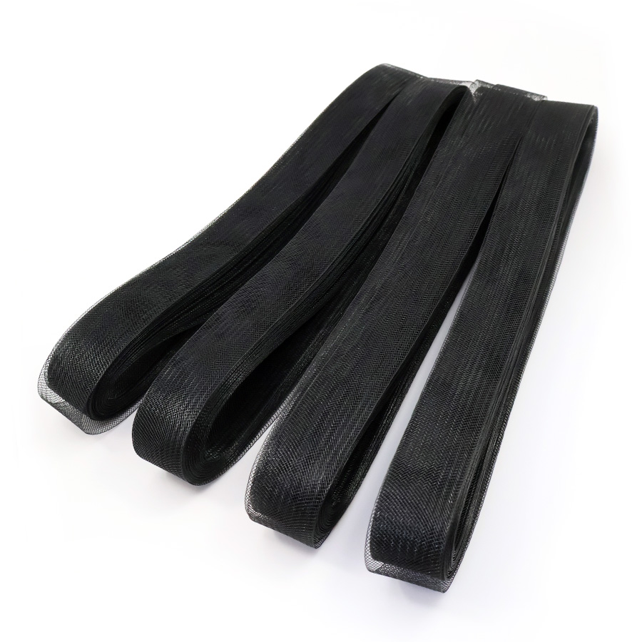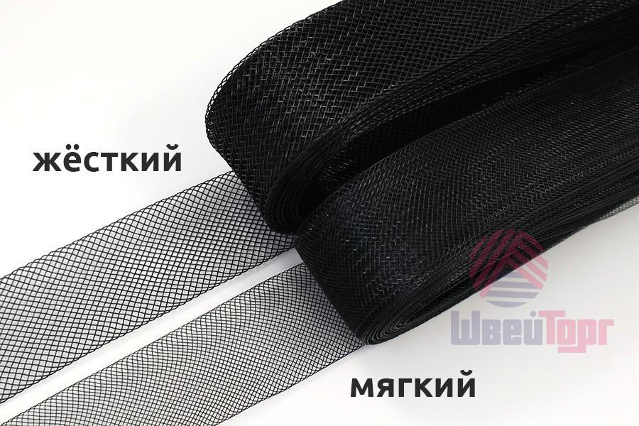 Кринолиновая сетка в виде ленты предназначена для придания объёма или формы тканям (фатин, органза и т.д.) при пошиве свадебных, вечерних или детских платьев. Многие называют кринолиновую ленту - широкий регилин. Чаще всего такую ленту притачивают с изнаночной стороны юбки типа "солнце".