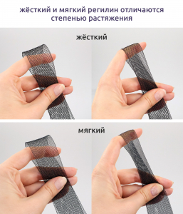 Мягкий сетчатый регилин в отличие от жёсткого легко тянется, драпируется и может стать самостоятельным материалом для элементов декора (вставки в букеты, элементы костюмов, крылья фей и т.д.).