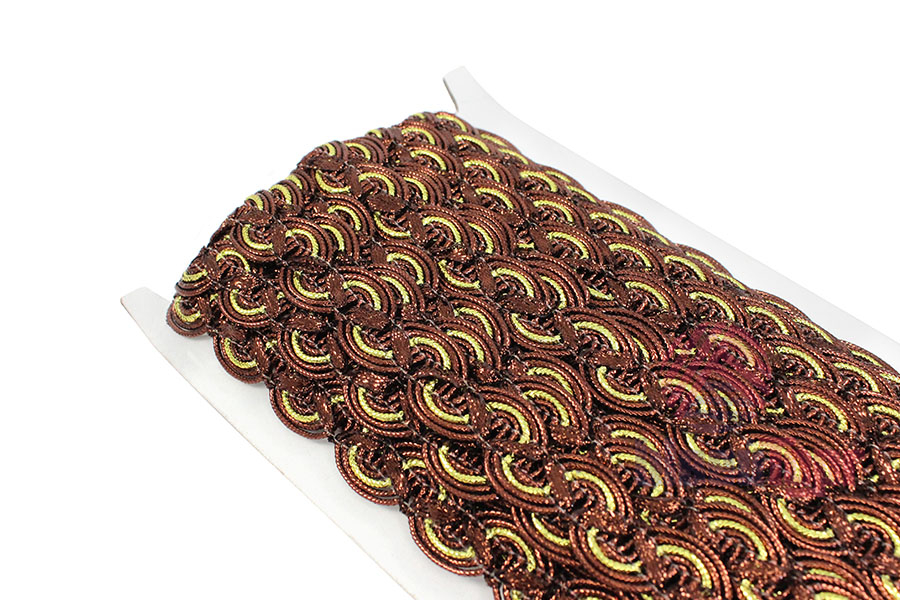 Декоративная металлизированная тесьма служит акцентной отделкой для разнообразных проектов, от скрапбукинга до пошива национальных и сценических костюмов. Плетение тесьмы создаёт красивый и оригинальный узор, а металлизированные нити создают яркий блеск.