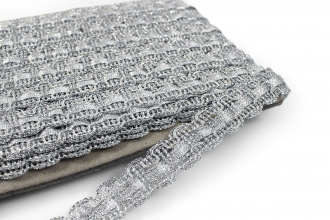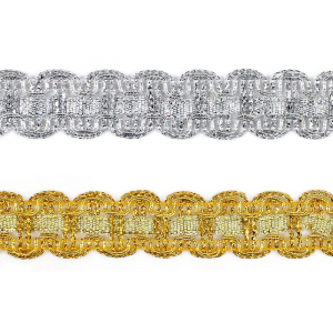 Тесьма доступна в двух цветах: золото и серебро. Она идеально подходит для отделки одежды, декора сценических костюмов, а также для украшения головных уборов и элементов интерьера. Представляет собой прочную плетёную, рельефную тесьму с повторяющимся геометрическим узором. Тесьма пронизана металлизированными нитями, что придаёт ей уникальный блеск. Создавайте свои неповторимые изделия!