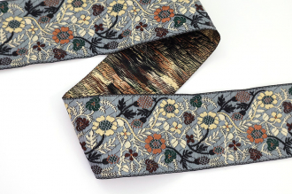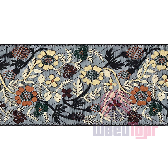 Данная жаккардовая тесьма обладает высокой прочностью, устойчива к растяжению и истиранию. Так как рисунок формируется непосредственно в процессе плетения, что придаёт тесьме эффект вышивки, тесьма сохраняет яркость цветов и не теряет своего внешнего вида долгое время. Рельефный узор тесьмы представляет геометрический орнамент. Благодаря высококачественному полиэстеру, из которого она изготовлена, тесьма сохраняет насыщенность цветов даже при частом использовании.