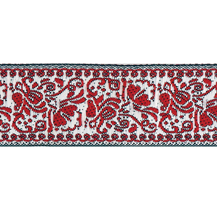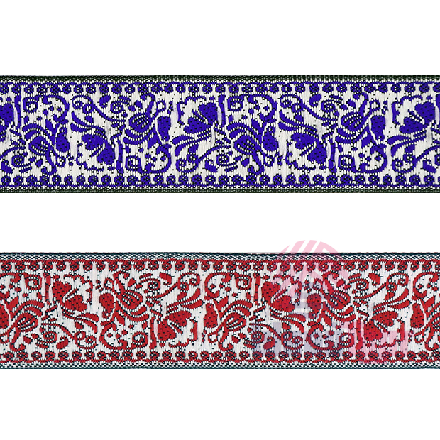 Данная жаккардовая тесьма обладает высокой прочностью, устойчива к растяжению и истиранию. Рисунок формируется непосредственно в процессе плетения, что придаёт тесьме эффект вышивки. Благодаря высококачественному полиэстеру тесьма сохраняет яркость цветов и не теряет своего внешнего вида долгое время.