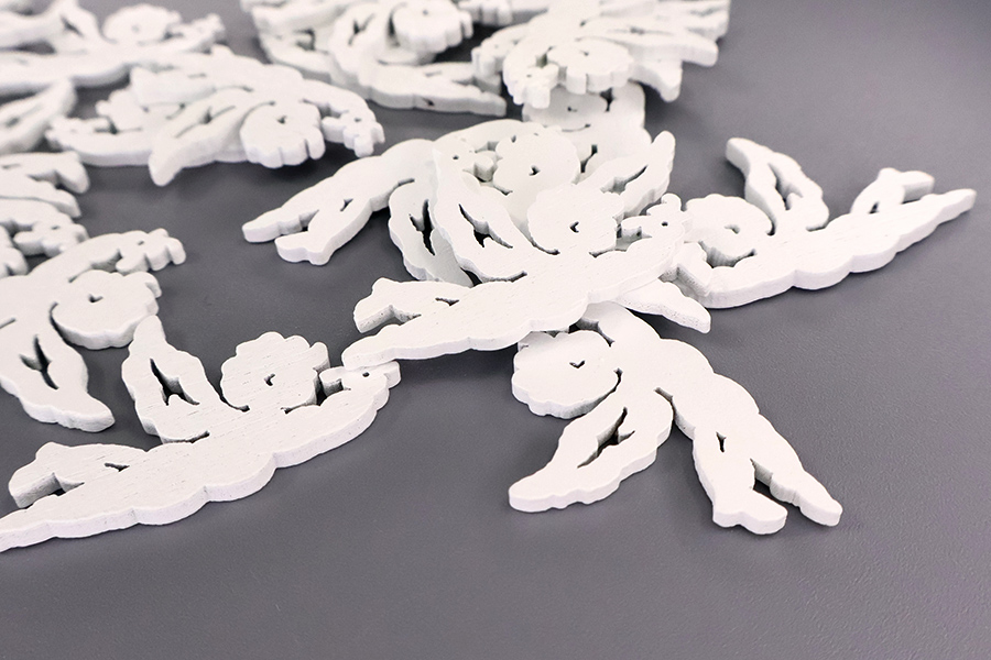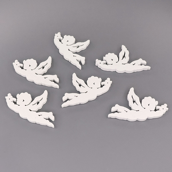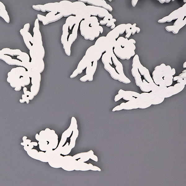 Деревянная фигурка ангела выполнена из древесины толщиной 2 мм и покрыта стойкой белой краской, которая сохраняет чистоту и свежесть цвета на протяжении долгого времени. Изделие представляет собой летящего ангелочка с расправленными крыльями — силуэт передан лаконично, но с изяществом, что придаёт фигурке лёгкость и трогательность. Размер составляет 2,7×4,1 см, что делает её аккуратной и удобной для размещения в самых разных декоративных композициях.